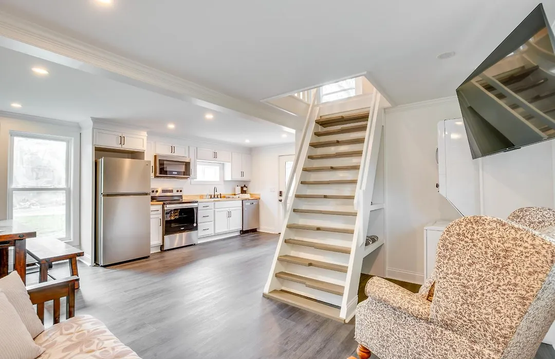 Die 2-Zimmer- Walk To Winery Holt Home 8 Mi To State Park! verfügt über eine voll ausgestattete Küche mit einem Kühlschrank, Küchenutensilien und einem Geschirrspüler für Selbstversorger.